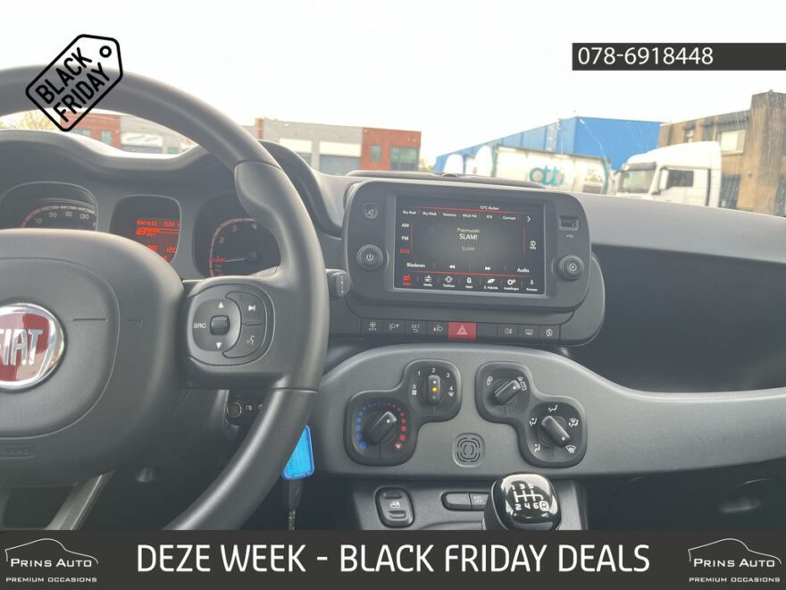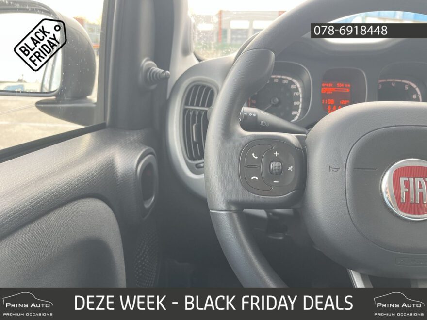 Omdat u nu eenmaal niet overal ogen heeft, is deze Fiat Panda voorzien van een achteropkomend verkeer waarschuwing die registreert wanneer de afstand tot uw achterligger te krap is. Volume aanpassen, andere radiozender? U bedient het audiosysteem veilig en handig met de functies op het stuur. Met de DAB-ontvanger heeft u keuze uit talloze digitale radiozenders met de allerhoogste geluidskwaliteit. Met één druk op de knop blaast de airconditioning een koele bries door het interieur. En dan is deze auto ook nog eens voorzien van centrale deurvergrendeling met afstandsbediening en verstelbaar stuur.