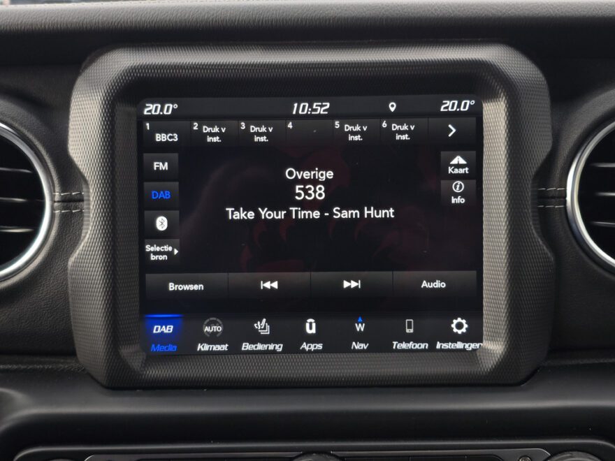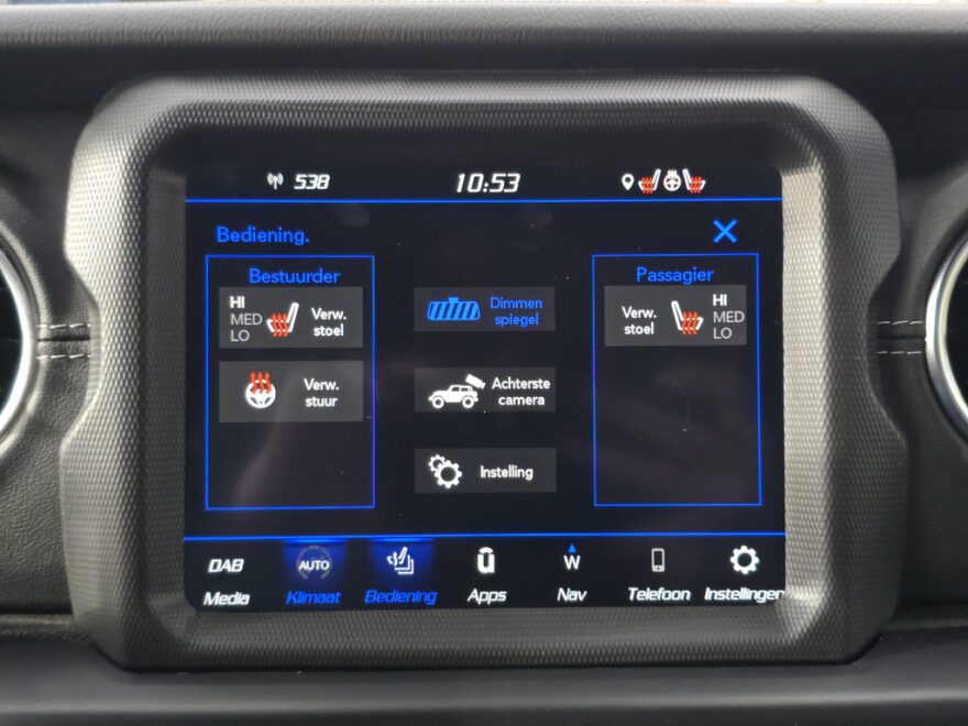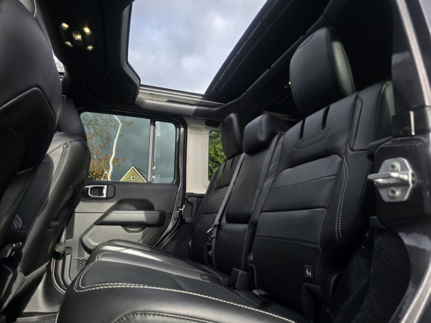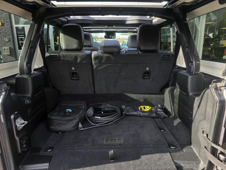 Wat deze Wrangler écht bijzonder maakt, is de Sky One-Touch Power Top – een elektrisch bedienbare softtop waarmee je met één druk op de knop het hele dak opent. In een paar seconden geniet je van de open lucht, het zonlicht en dat onmiskenbare gevoel van vrijheid waar Jeep om bekendstaat. Geen gedoe met panelen of ritssluitingen, maar pure beleving, het hele jaar door.