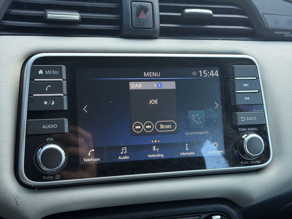 Harder en zachter met een druk op de knop: de audiobediening op het stuurwiel maakt het mogelijk. Met de DAB-ontvanger heeft u keuze uit talloze digitale radiozenders met de allerhoogste geluidskwaliteit. Natuurlijk is deze Nissan Micra voorzien van cruise control. Ja, ook airconditioning is in deze auto aanwezig. De uitrusting van deze Nissan is met centrale deurvergrendeling met afstandsbediening, bagage afdekhoes, boordcomputer en verstelbaar stuur behoorlijk compleet.