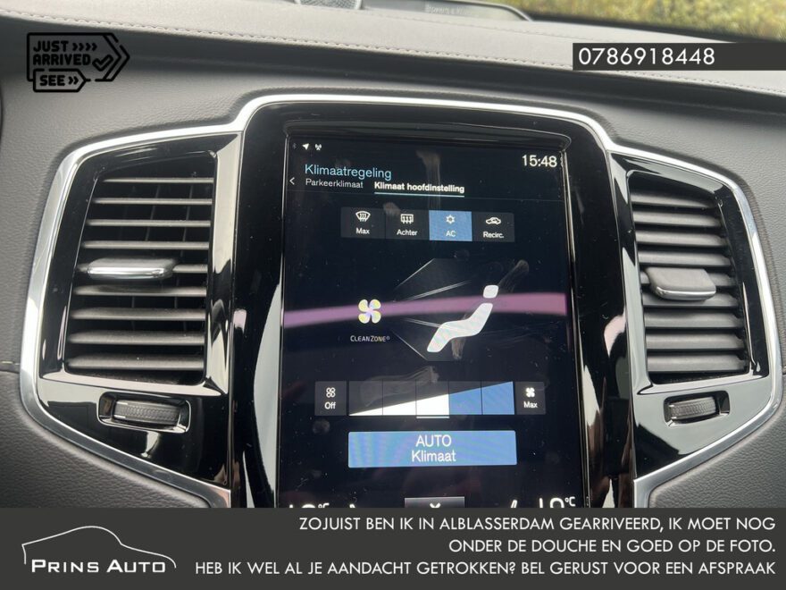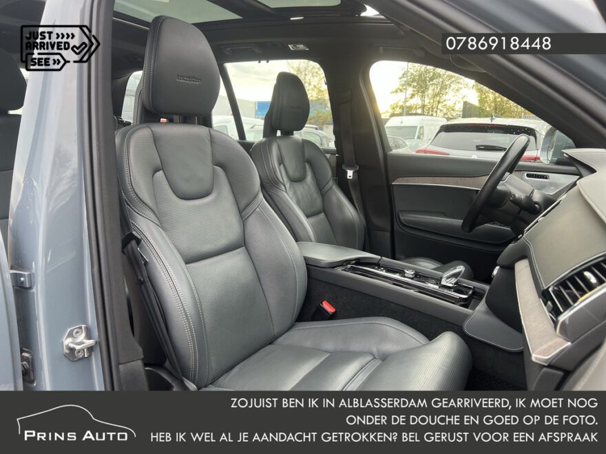 Deze 7-persoons XC90 biedt alles wat je maar kunt wensen: ruimte voor het hele gezin, ongeëvenaarde veiligheid en een interieur dat je direct omarmt met zijn serene luxe. Binnenin wacht een schitterend geperforeerd Nappa lederen interieur in Charcoal/Slate Grey, compleet met stoelventilatie – een combinatie die pure elegantie uitstraalt en elke rit tot een genot maakt.